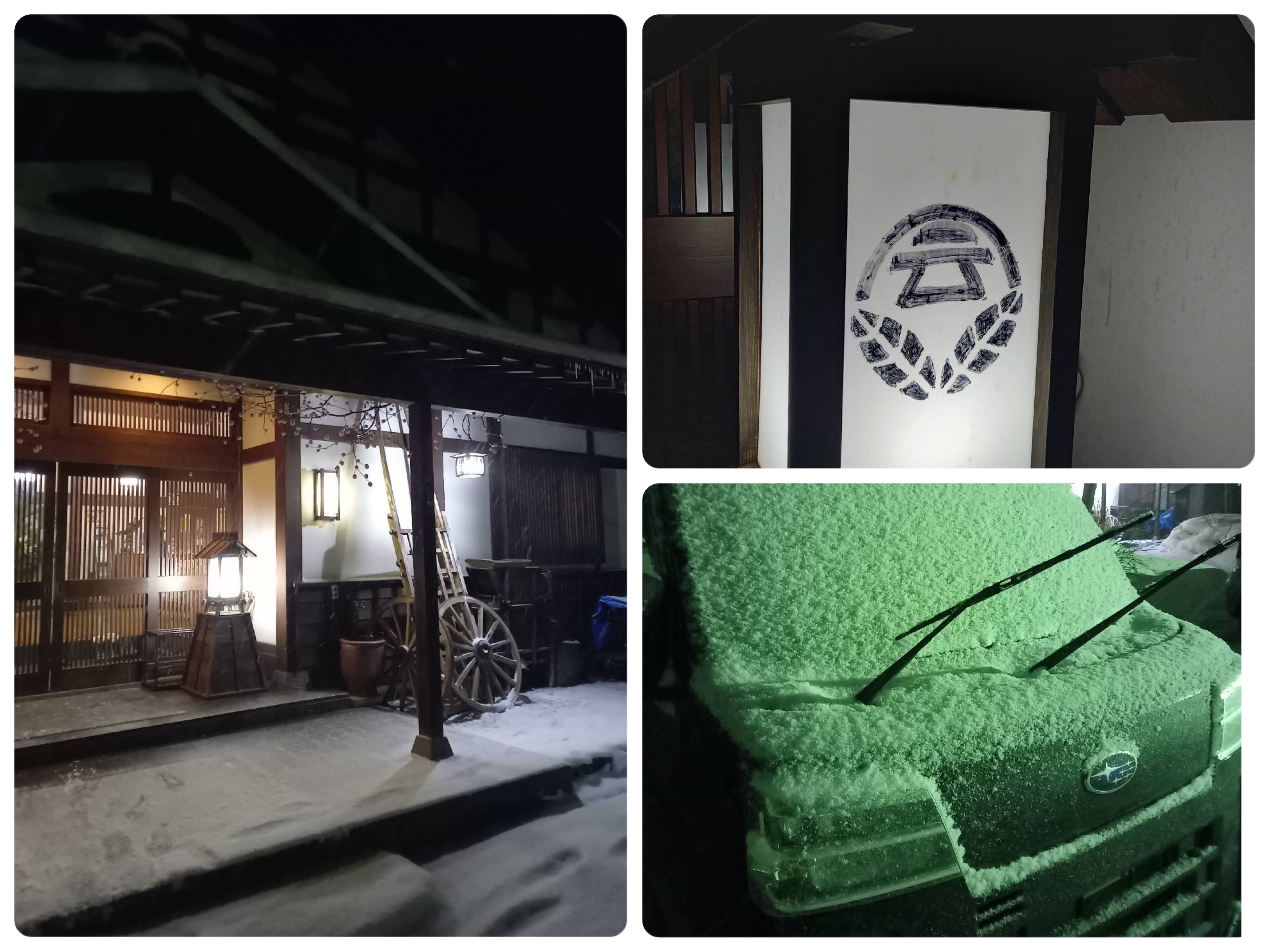 こちらは、隣接する宿泊施設の入り口です。歩いて数分で温かい母屋に入れます。